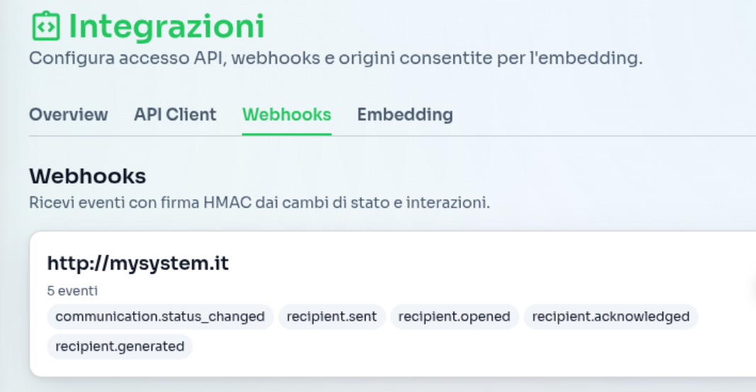 Ogni webhook resta tracciato con stato e risposta ricevuta.
